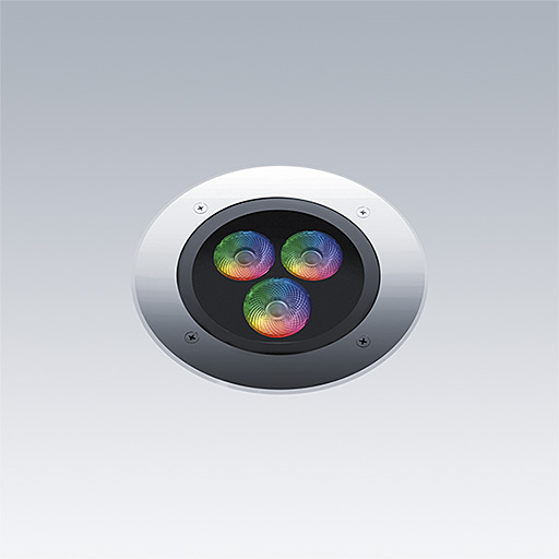 Cesar Opera, walk over montage encastré dans le sol, luminaire à LED pour l'éclairage décoratif des façades, avec et distribution faisceau medium.. Flux fixe Driver. Classe électrique III, IP67, Résistance aux impacts : IK09. Boîtier : Moulage sous pression aluminium, sans peinture. Température de service de Température ambiante : -20°C à +40°C. Livré avec LED rouge, vert, bleu et blanc.