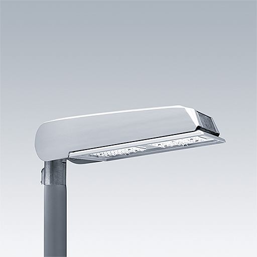 Lanterne d’éclairage routier LED de taille Large avec 60 LED et une optique Route étroite 700mA. Electronique,Classe électrique II, IP66, IK08. Corps : aluminium (EN AC-44300) Moulage sous pression, Gris pâle 150 sablé et texturé (similaire à RAL9006). Fermeture : verre plat trempé. Vis : Acier inox, traitement Ecolubric®. Livré avec un adaptateur d’emmanchement Ø 60 mm qui convient pour montage top (inclinaison 0°/5°/10°) ou latéral (inclinaison -20°/-15°/-10°/-5°/0°). Bi-puissance autonome BPxyzz (x = nb heure avant, y = nb heure après le point milieu, zz = % de réduction) Livré avec LED 4 000 K. Protection contre la surtension : mode commun à une impulsion 10 kV et mode commun multi-impulsions 8 kV et mode différentiel multi-impulsions 6 kV. Si un système DALI permanent est connecté, mode différentiel et mode commun multi-impulsions 6 kV.