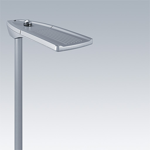 Lanterne d’éclairage routier LED Small avec 24 LED alimentées en 500mA avec optique Rue large. Driver Programmable. Classe électrique I, IP66, IK08. Corps : aluminium (EN AC-44300) Moulage sous pression, thermopoudré texturé gris clair. Fermeture : trempé plat verre. Visserie : Acier inox, traitement Ecolubric®. Montage top  (Ø 60/76 mm, incliné 0°/5°/10°) ou montage latéral (Ø 34/42/49/60 mm, incliné 0°/-5°/-10°/-15°).   Équipé d’une prise pour cellule photoélectrique Nema à 3 broches  Livré avec LED 4 000 K.