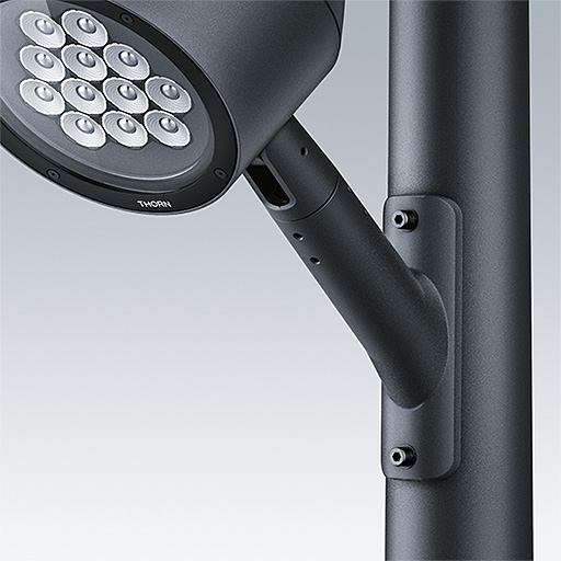 Support de mât pour Contrast12L. À monter sur un mât de Ø 60 à Ø 100 mm. Fabriqué en aluminium Moulage sous pression, thermopoudré, texturé gris anthracite 900 sablé. Rotation horizontale et latérale. Best resistance against corrosion. Compatible with seaside installation.