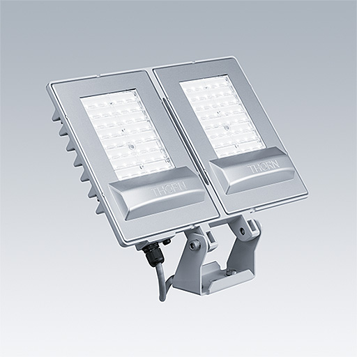 Projecteur LED compact, Medium ultra-léger avec optique asymétrique. Classe électrique I, IP66, Résistance aux impacts : IK07. Corps : aluminium Moulage sous pression Gris pâle 150 sablé et texturé (similaire à RAL9006).. Fourche : aluminium. Fermeture : Polycarbonate (PC). Pré-câblé avec un câble lg. 60 cm. La fourche peut être fixée par un boulon M10 et/ou deux boulons M8, elle est orientable et réversible pour permettre différentes positions de fixation. Livré avec LED 4 000 K.