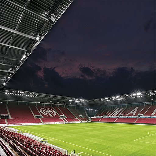 Projecteur LED haute puissance avec distribution lumineuse Optique 1 : faisceau étroit; Optique 2 : asymétrique 60°; Optique 3 : asymétrique 60° de 456 LED. Appareillage externe, Fourni uniquement par Thorn Lighting, à commander séparément (courant de transmission maximum 850mA) et câblage via câble de type H07 RN-F et mini-diamètre de 13 mm. Classe électrique I, IP66, IK08. Dissipateur thermique : Moulage sous pression aluminium thermopoudré gris foncé (similaire à RAL 7043). Support de fixation et cadre : gris foncé (similaire à RAL 7043). Fermeture : 4 mm transparent verre. Fourche montée à l’aide des points de fixation disponibles (une vis M20 et deux vis M14). Fonctionnement à faibles papillotements (< 1 %) adapté à une diffusion TV haute définition. Livré avec LED 4 000 K