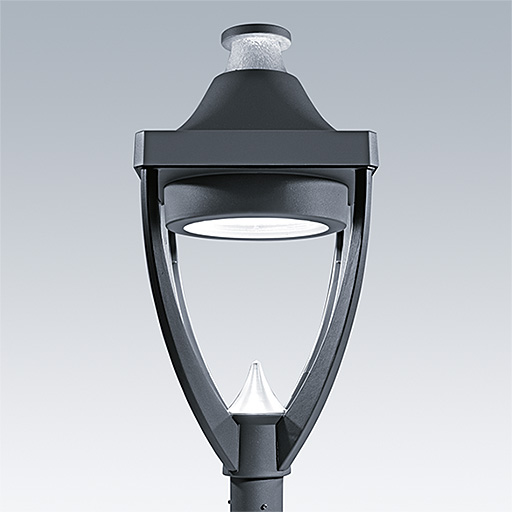 Lanterne LED patrimoine moderne Installation portée avec optique perforée pour créer un éclairage décoratif sur le dessus de la lanterne. Electronique. Classe électrique II, IP65, IK08. Corps : aluminium Moulage sous pression thermopoudré gris 900, finition texturé (close to RAL 7043). Boîtier : verre trempé plat. Protection contre les surtensions : 10 kV en mode commun single pulse et 8 kV en mode commun multipulse; 6 kV en mode différentiel multipulse. Si un système DALI est connecté: 6 kV en mode mode commun et mode différentiel multipulse. Livré avec LED 4 000 K.
