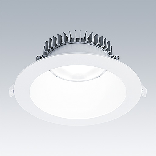 Downlight LED encastré de faible hauteur. Convient pour les découpes de plafond Ø190-230 mm dans des rénovations ou des installations neuves, simples et rapides. Driver LED Flux fixe détachable avec fonctionnalité CC, réglable 50 – 100 %, configurable NFC. Câblage avec repiquage possible. Corps : Matière plastique pour gestion thermique. Diffuseur : Polycarbonate (PC), réflecteur lisse en finition blanc avec faisceau large. Réflecteur : Polycarbonate (PC) de haute qualité et hautement réfléchissant. Classe électrique II, IP44_IP20. Clips à ressort pour des épaisseurs de plafond jusqu'à 35 mm. Livré avec LED 4 000 K