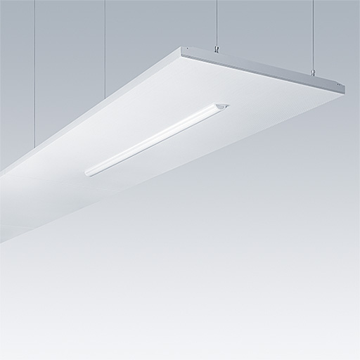 Une structure architecturale suspendu incorporant un luminaire LED Direct - indirect. non gradable Electronique. Classe électrique I, IP20. Structure et cadre du luminaire : aluminium. Optique : acrylique bombé. Fourni avec une fiche Wieland à 6 pôles sur un câble à 6 fils de 3,4 m et une prise Wieland à 6 pôles montée sur un panneau, pour un passage en coupure. Livré avec les câbles de suspension. Livré avec LED 4 000 K.