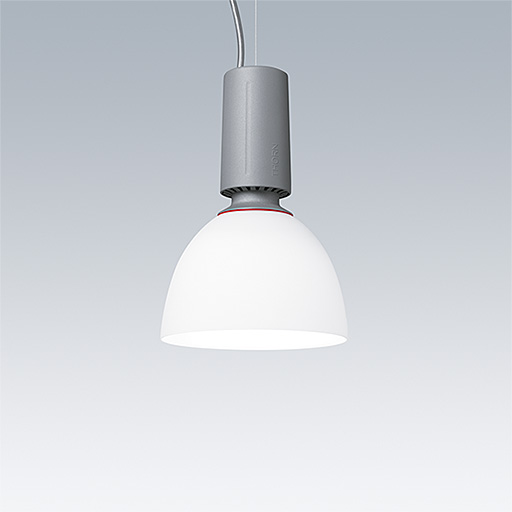 Suspension LED moderne et efficace. Convient pour les installations de secours avec batterie centrale Appareillage gradable DALI. Boîtier : aluminium Moulage sous pression avec finition gris satiné. Réflecteur : opale verre avec fixation au boîtier de type baïonnette. Classe électrique I, IP20. Suspension par câble unique réglable 2,5m (fourni). Pré-câblé avec un câble tressé en silicone ignifuge, 5 P 0,75 mm². Livré avec LED 4 000 K