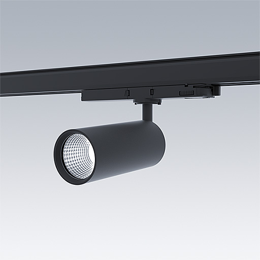 Projecteur LED pour installation sur rail triphasé avec distribution lumineuse de type projection large et température de couleur stabilisée. Electronique, non gradable. Classe électrique II, IP20. Corps : aluminium Moulage sous pression, peinture microtexturée noir. Réflecteur : PC poudré. Projecteur orientable sur le plan horizontal de 360° et inclinable sur le plan vertical de 90°. Livré avec LED 3 000 K